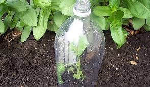 of broken bottles, and plants them, firmly,